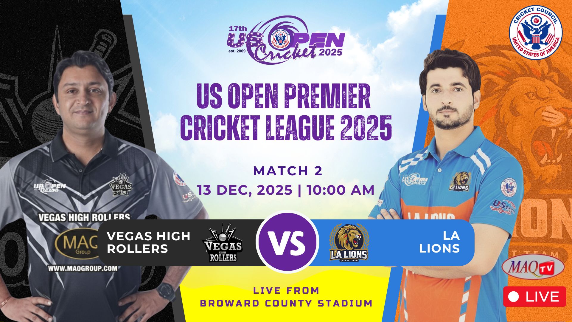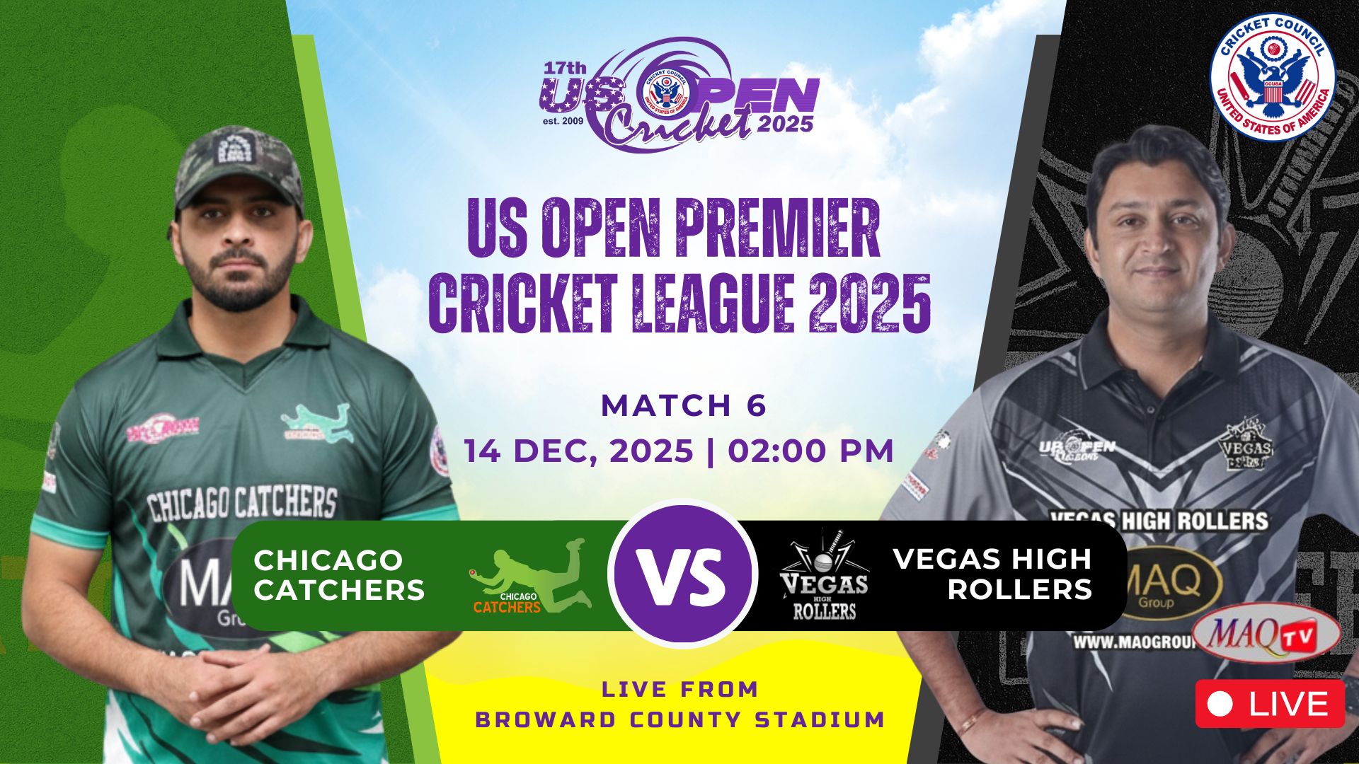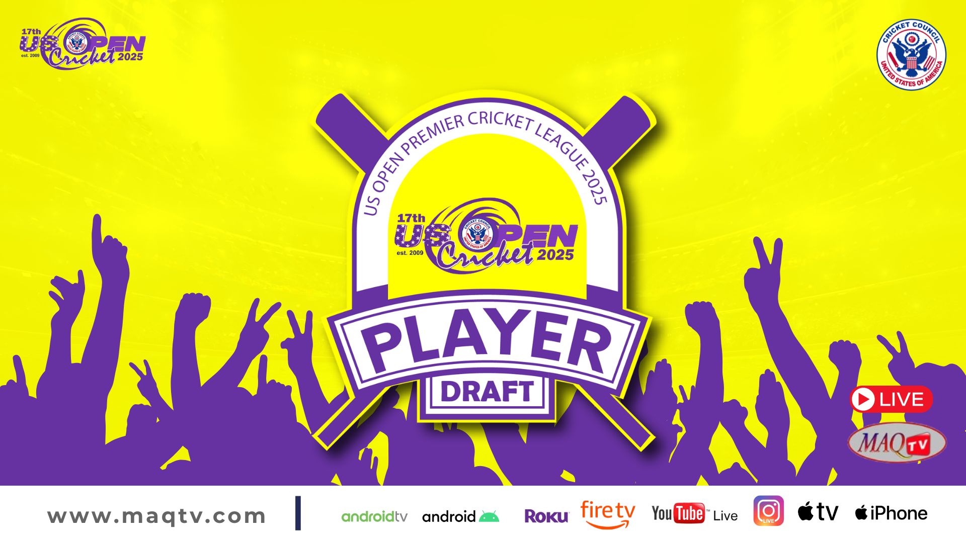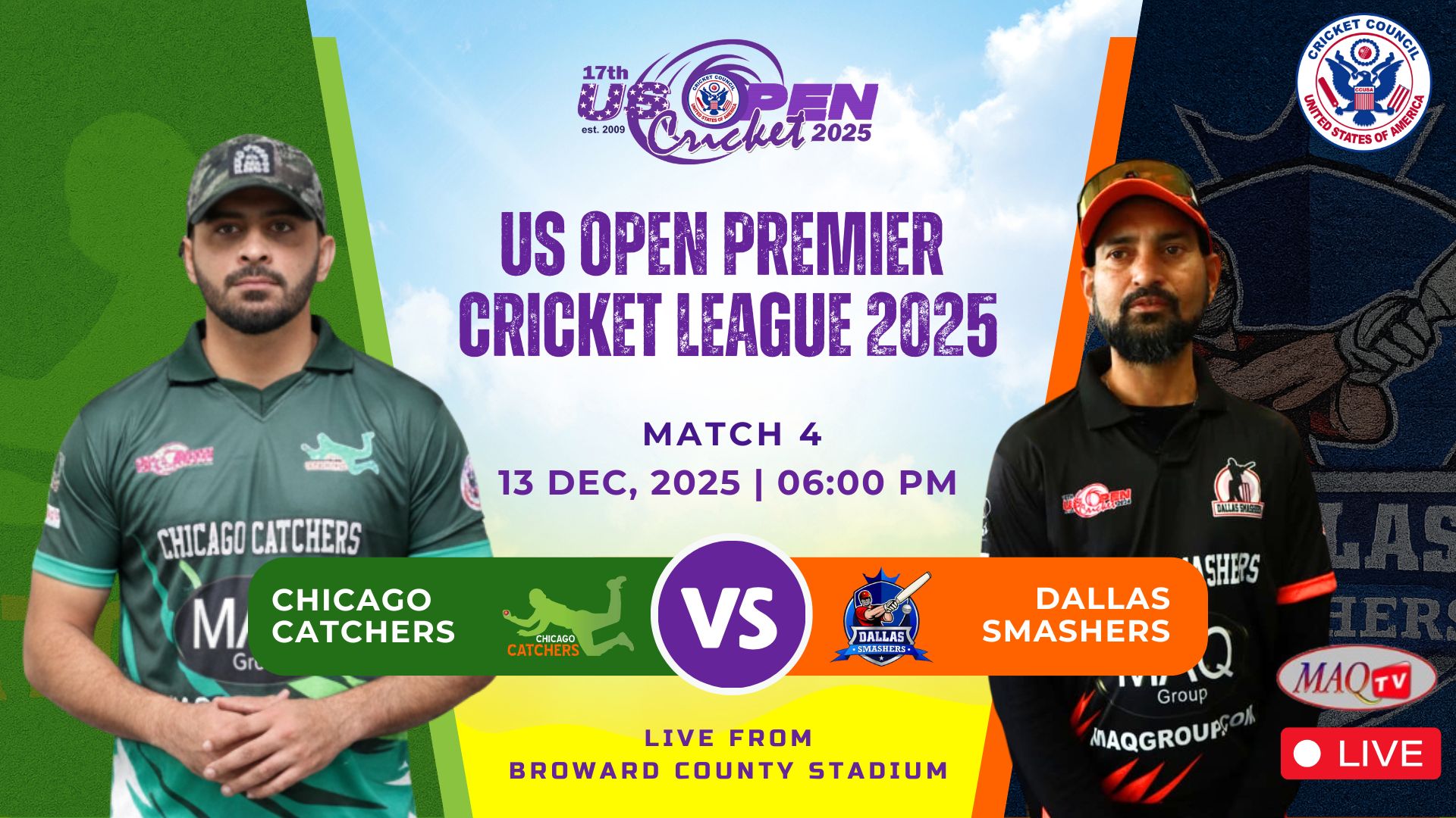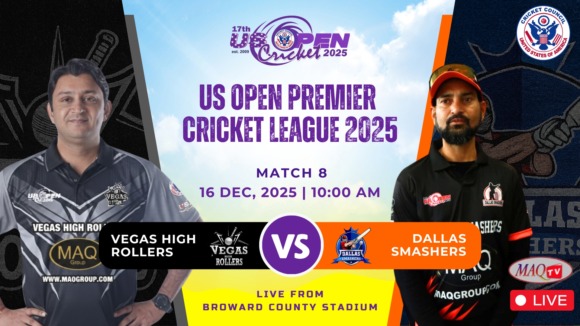 MAQ TV 24/7 Live Cricket Actions from all over the World LIVE US OPEN 2025 HIGHLIGHTS Shows Click to below watch live... Recent Shows Click to below watch match ... US OPEN PREMIER CRICKET LEAGUE Click to below watch match live... Watch your favorites. MAQ TV 24/7 No.1 USA Sports Channel for live Cricket Streaming in the World Promote Cricket in USA. Watch Live Watch Live Tune into our LIVE programming anytime On Demand Unlimited Streaming Experience. We bring the best live sports streaming directly to you for viewing on your favorite devices. Stream anytime on smart TV, mobile, web, and more. Enjoy Live Sports. Anytime. Anywhere. It’s easier than ever to watch on your phone, tablet, desktop or in-home TV. Where to watch Stream anytime on your favorite platforms and devices. Facebook Twitter Youtube Instagram Tiktok