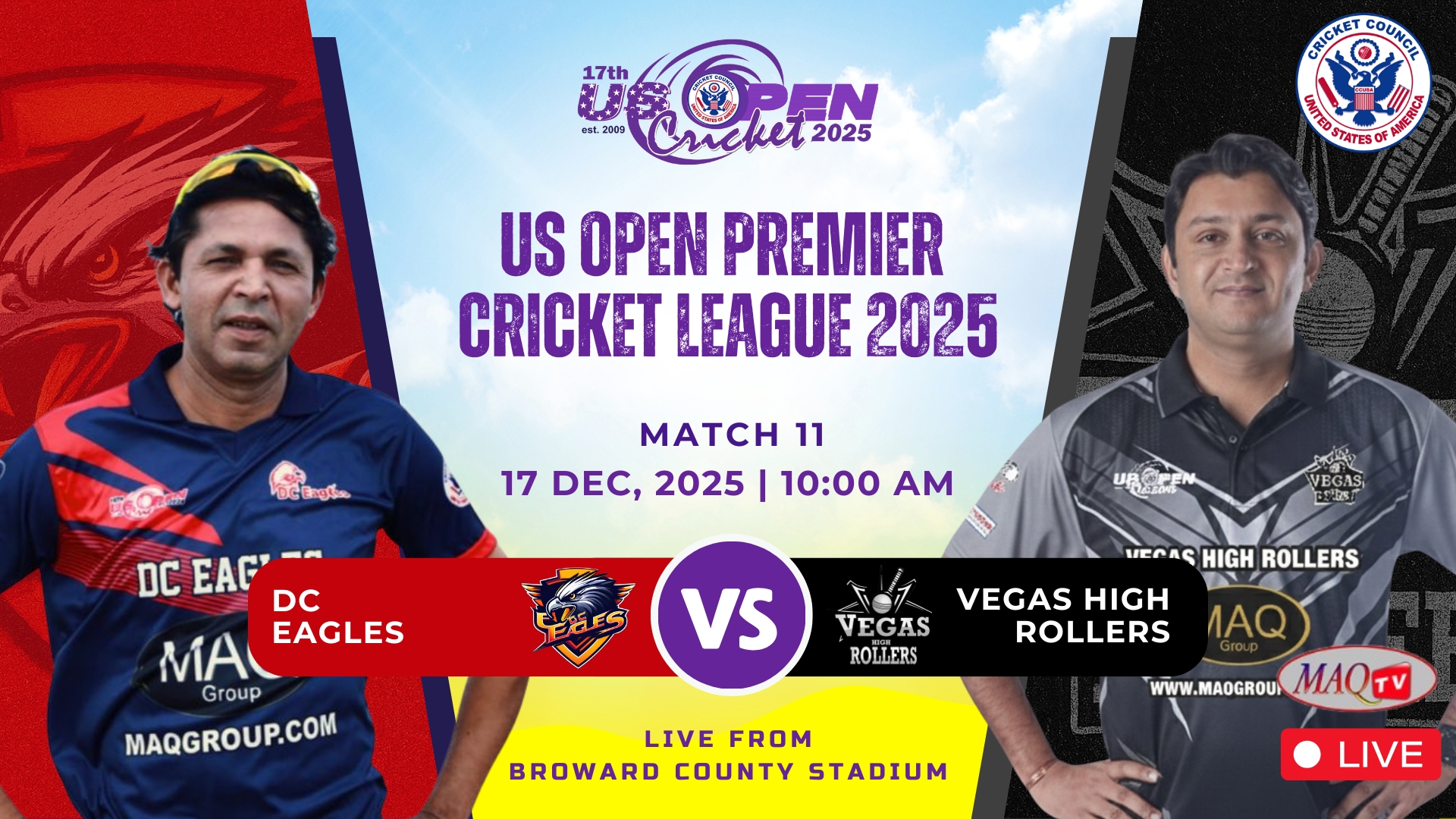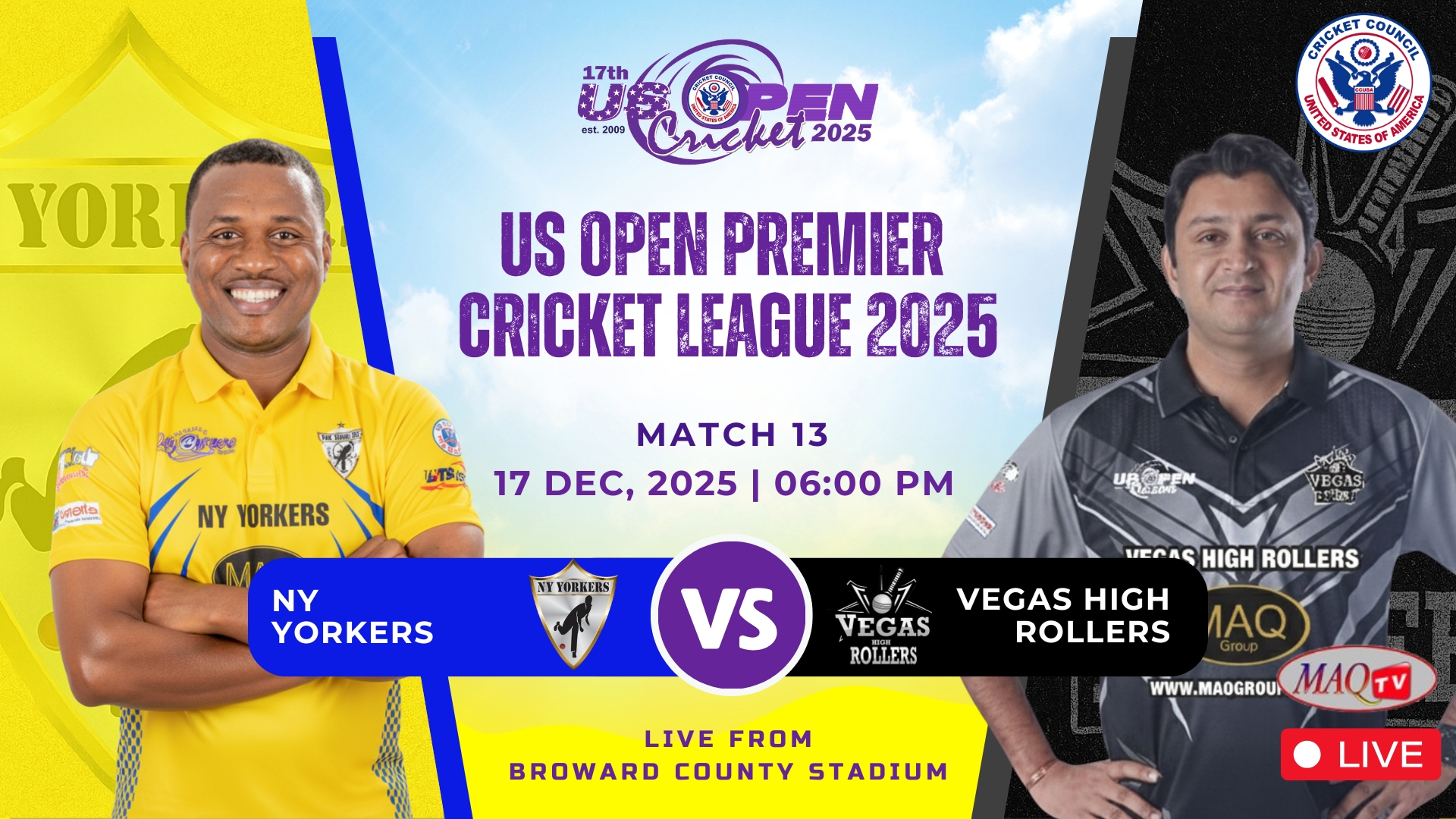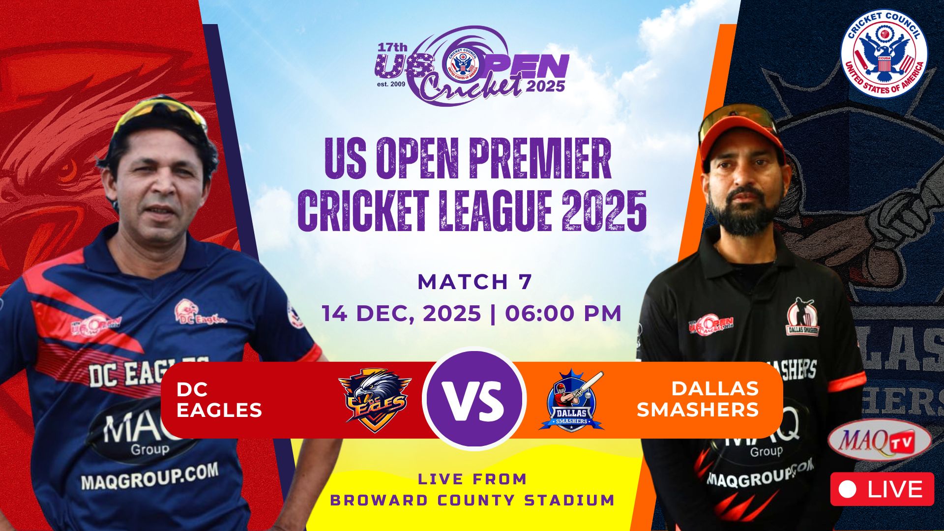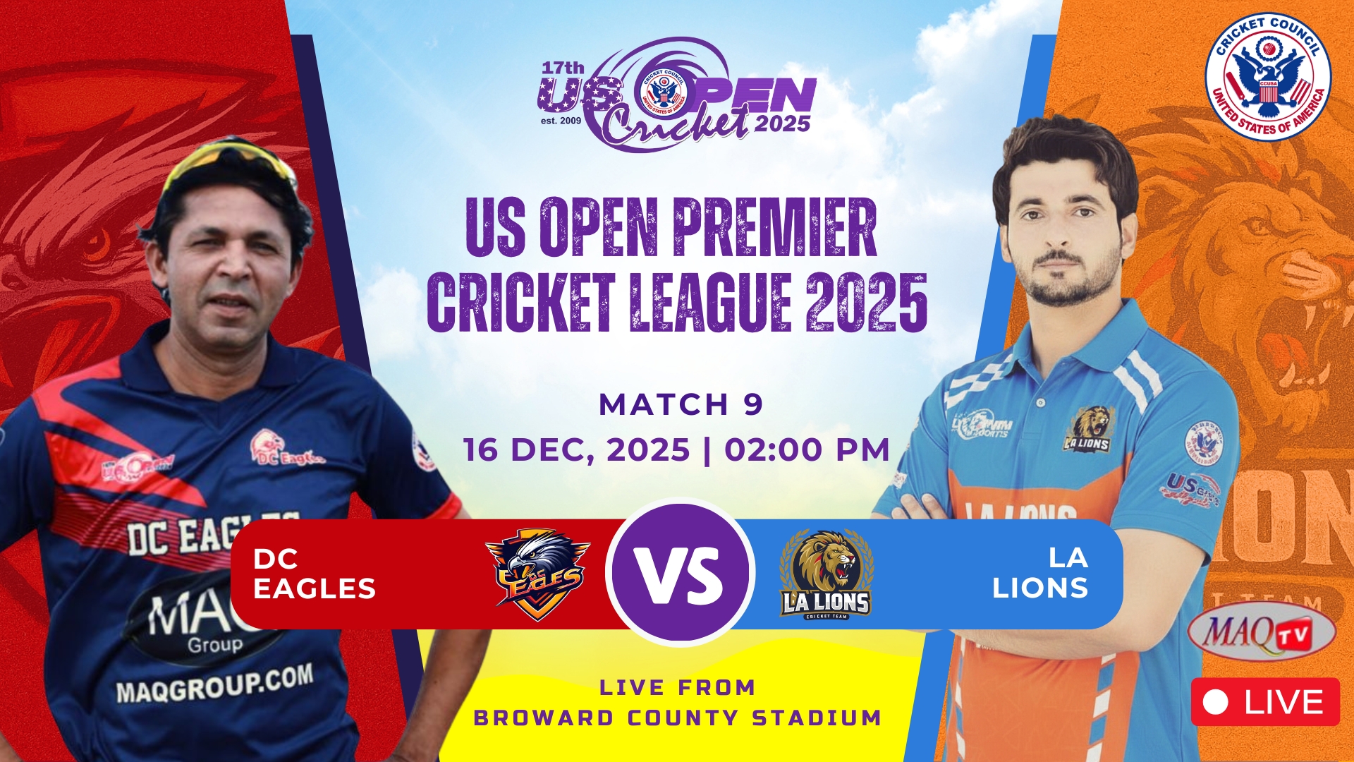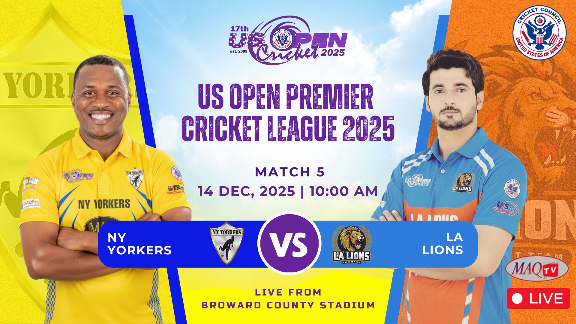 MAQ TV 24/7 Live Cricket Actions from all over the World LIVE US OPEN 2025 HIGHLIGHTS Shows Click to below watch live... Recent Shows Click to below watch match ... US OPEN PREMIER CRICKET LEAGUE Click to below watch match live... Watch your favorites. MAQ TV 24/7 No.1 USA Sports Channel for live Cricket Streaming in the World Promote Cricket in USA. Watch Live Watch Live Tune into our LIVE programming anytime On Demand Unlimited Streaming Experience. We bring the best live sports streaming directly to you for viewing on your favorite devices. Stream anytime on smart TV, mobile, web, and more. Enjoy Live Sports. Anytime. Anywhere. It’s easier than ever to watch on your phone, tablet, desktop or in-home TV. Where to watch Stream anytime on your favorite platforms and devices. Facebook Twitter Youtube Instagram Tiktok