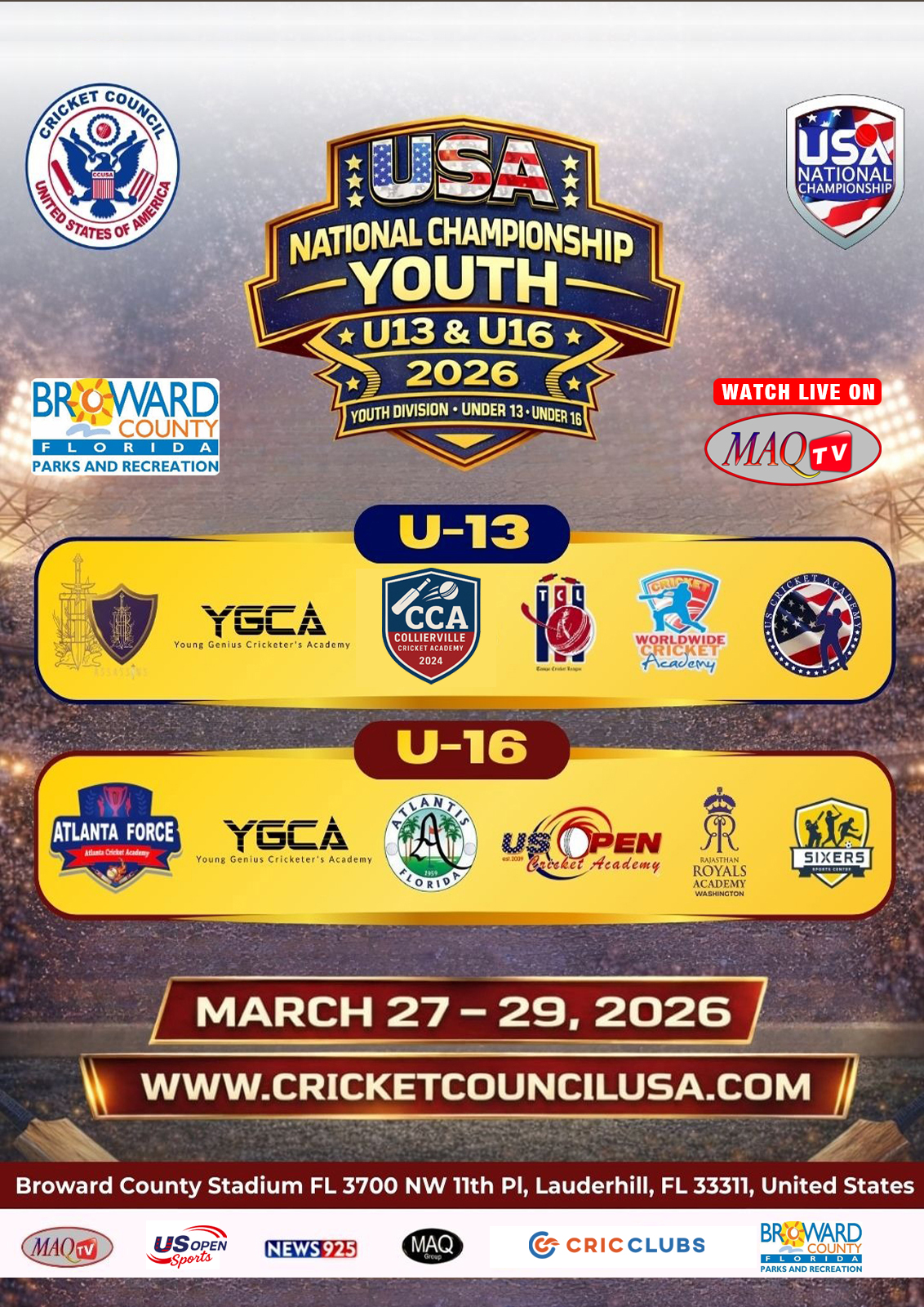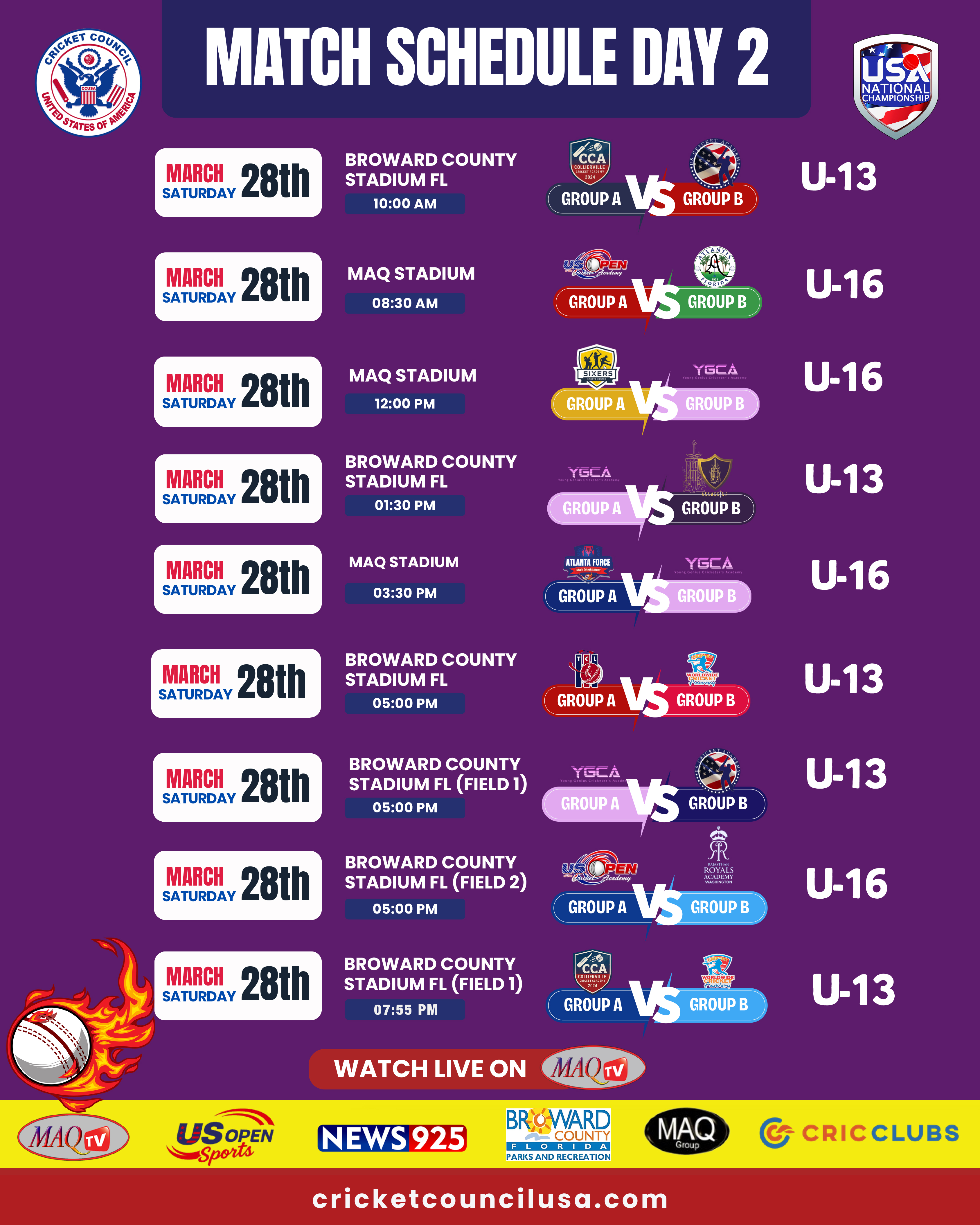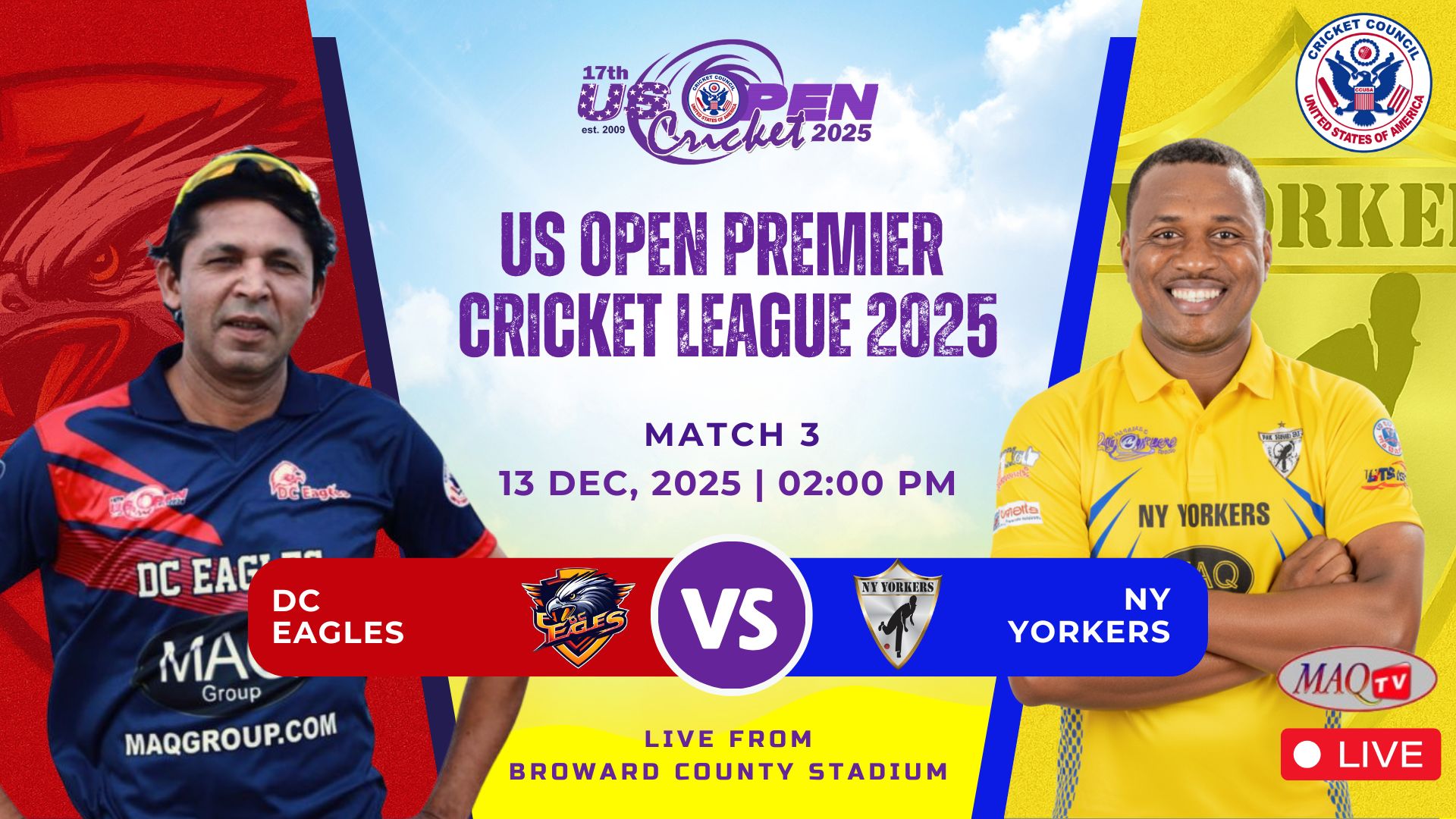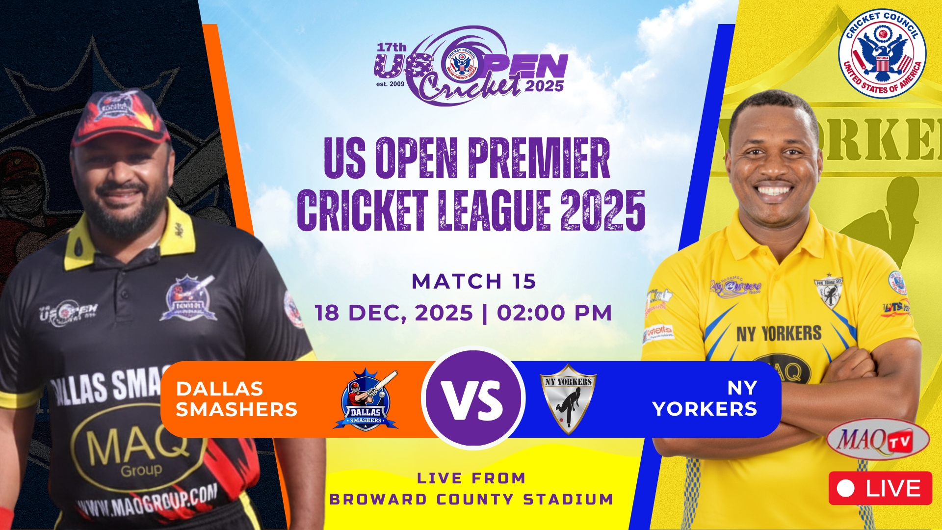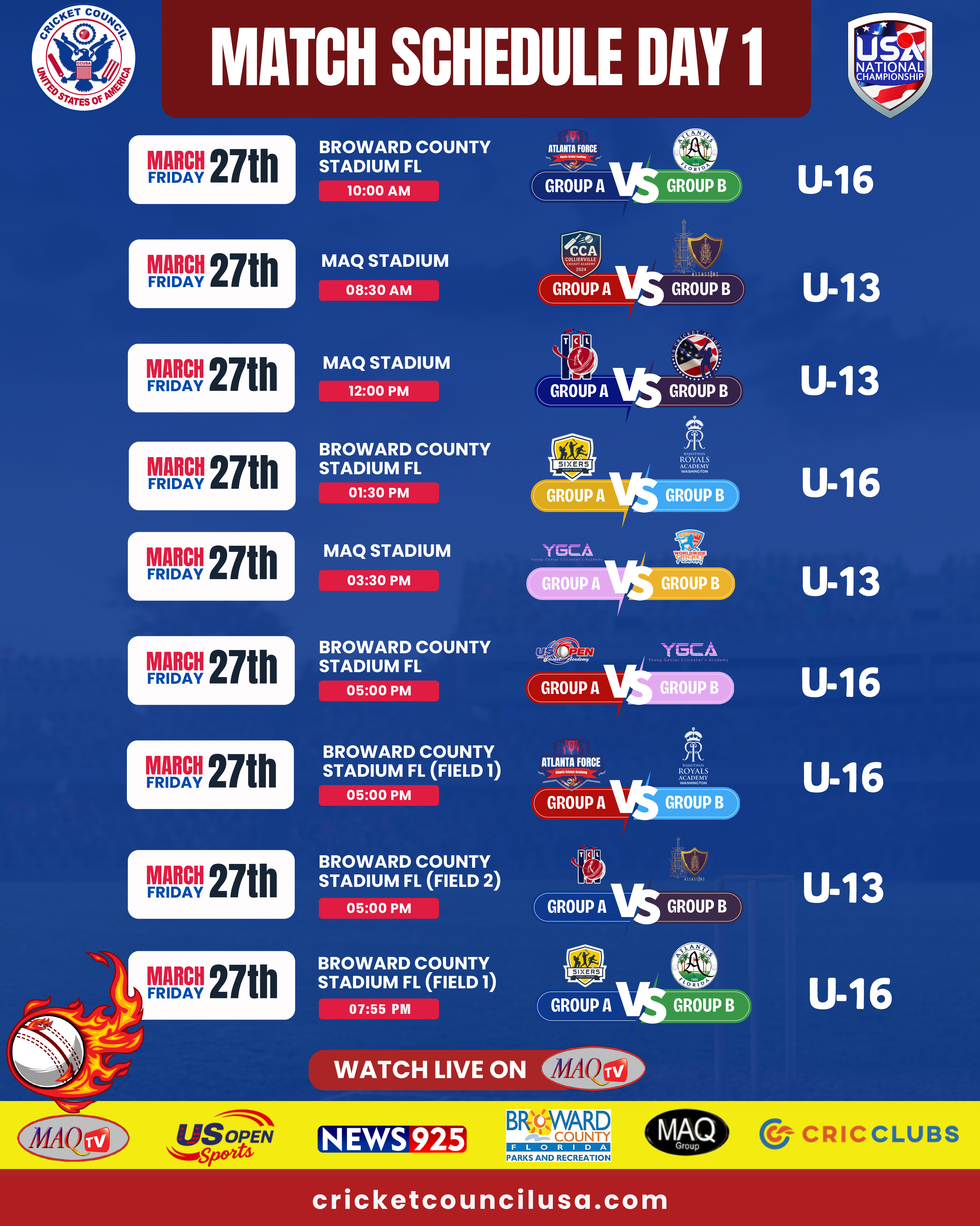 MAQ TV 24/7 Live Cricket Actions from all over the World LIVE US OPEN 2025 HIGHLIGHTS Shows Click to below watch live... Recent Shows Click to below watch match ... US OPEN PREMIER CRICKET LEAGUE Click to below watch match live... Watch your favorites. MAQ TV 24/7 No.1 USA Sports Channel for live Cricket Streaming in the World Promote Cricket in USA. Watch Live Watch Live Tune into our LIVE programming anytime On Demand Unlimited Streaming Experience. We bring the best live sports streaming directly to you for viewing on your favorite devices. Stream anytime on smart TV, mobile, web, and more. Enjoy Live Sports. Anytime. Anywhere. It’s easier than ever to watch on your phone, tablet, desktop or in-home TV. Where to watch Stream anytime on your favorite platforms and devices. Facebook Twitter Youtube Instagram Tiktok